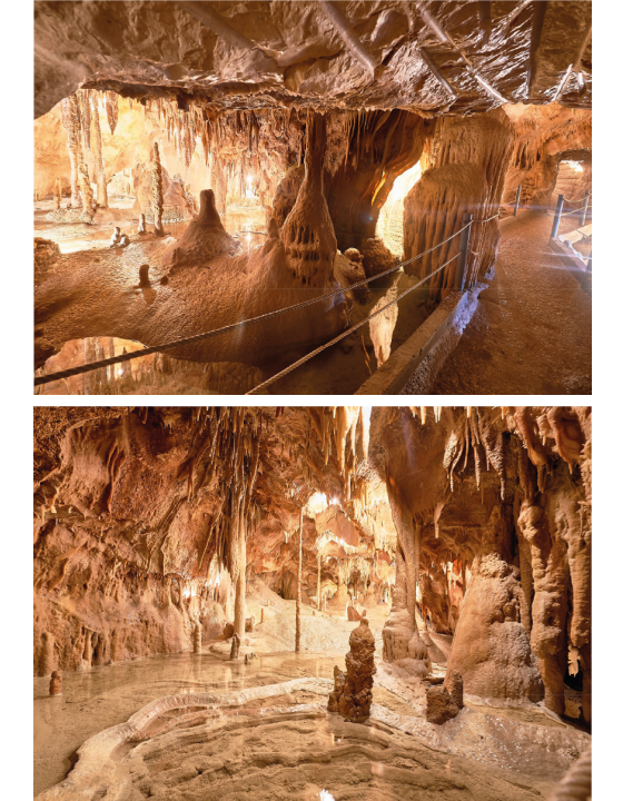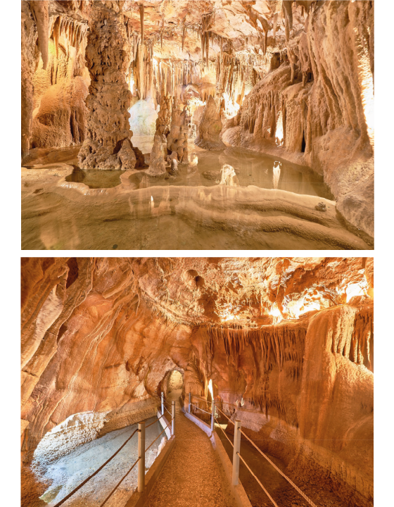 A visita inicia-se por uma entrada natural exterior e no seu interior vamos encontrar a delicadeza das suas formações “oolíticas” características do subsolo desta região, onde as “estalactites” e “estalagmites” surgem ligadas a pequenos lagos naturais que nos transportam para um maravilhoso mundo subterrâneo.